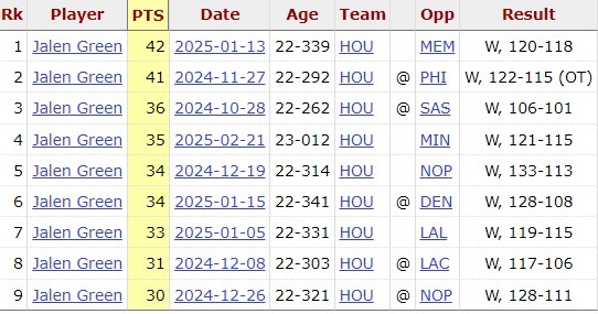 2025-03-18 14:34:46赢球密码!杰伦-格林本赛季第10次砍下30+ 火箭10战全胜