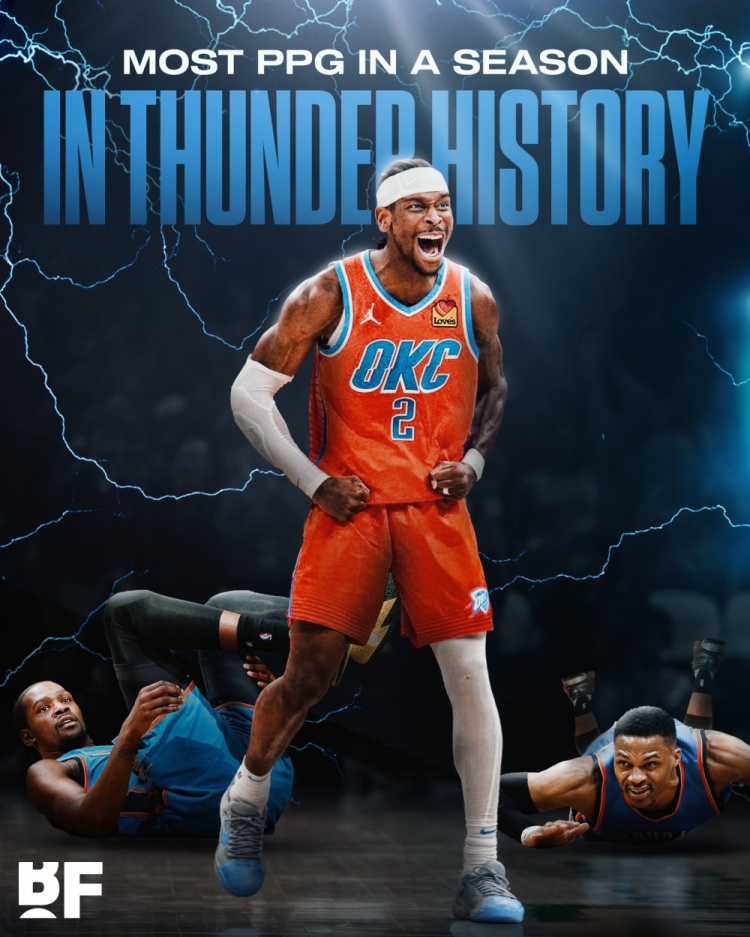 2025-03-18 15:00:23预定MVP?SGA场均得分达到33分 超越MVP赛季的KD威少排队史第一