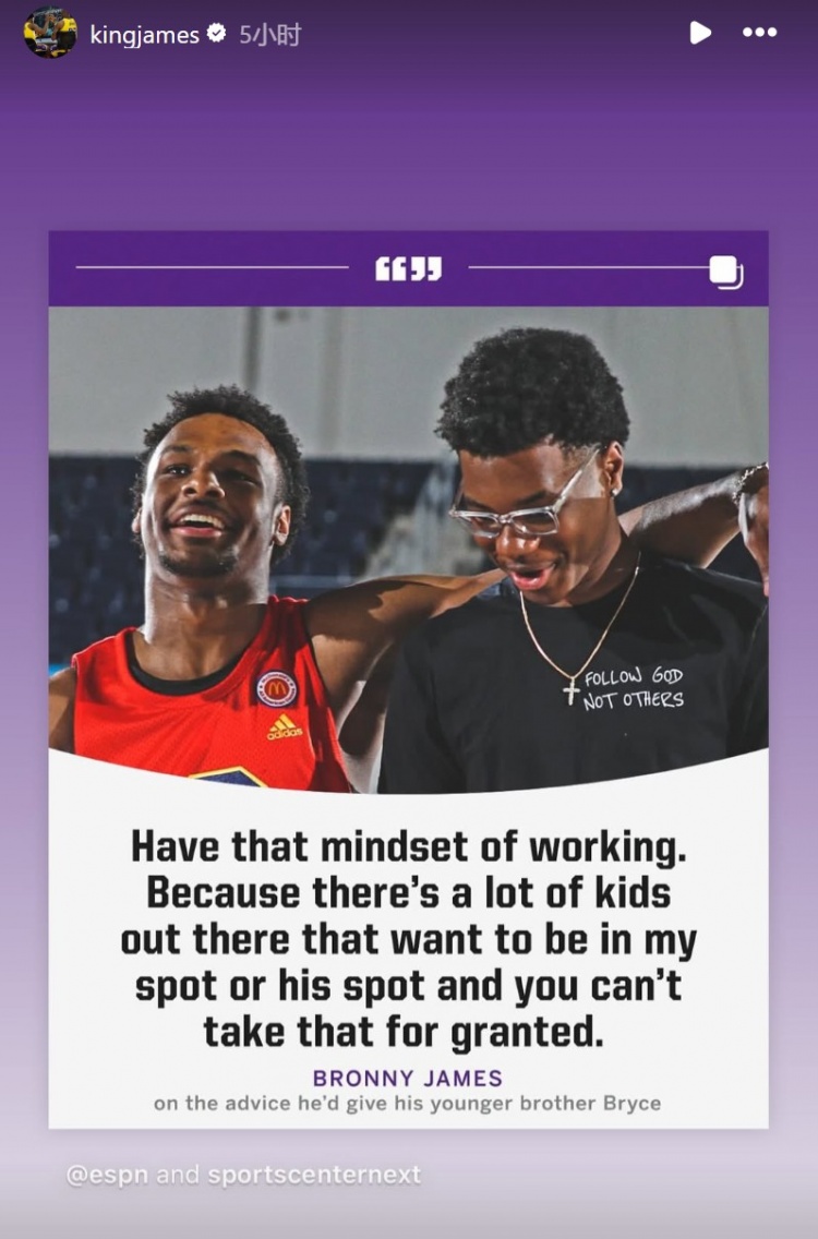 2025-03-22 05:47:40布朗尼建议布莱斯要有努力训练的心态!父亲詹姆斯转发