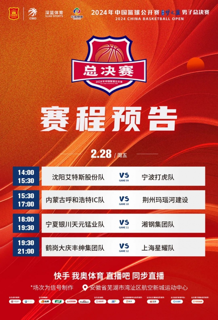 2月27日,2024年中国篮球公开赛洋河梦之蓝男子总决赛进入到第二个比赛日。在本轮比赛中,湘钢集团、宁波打虎、艾特斯股份、宁夏天元锰业获胜。